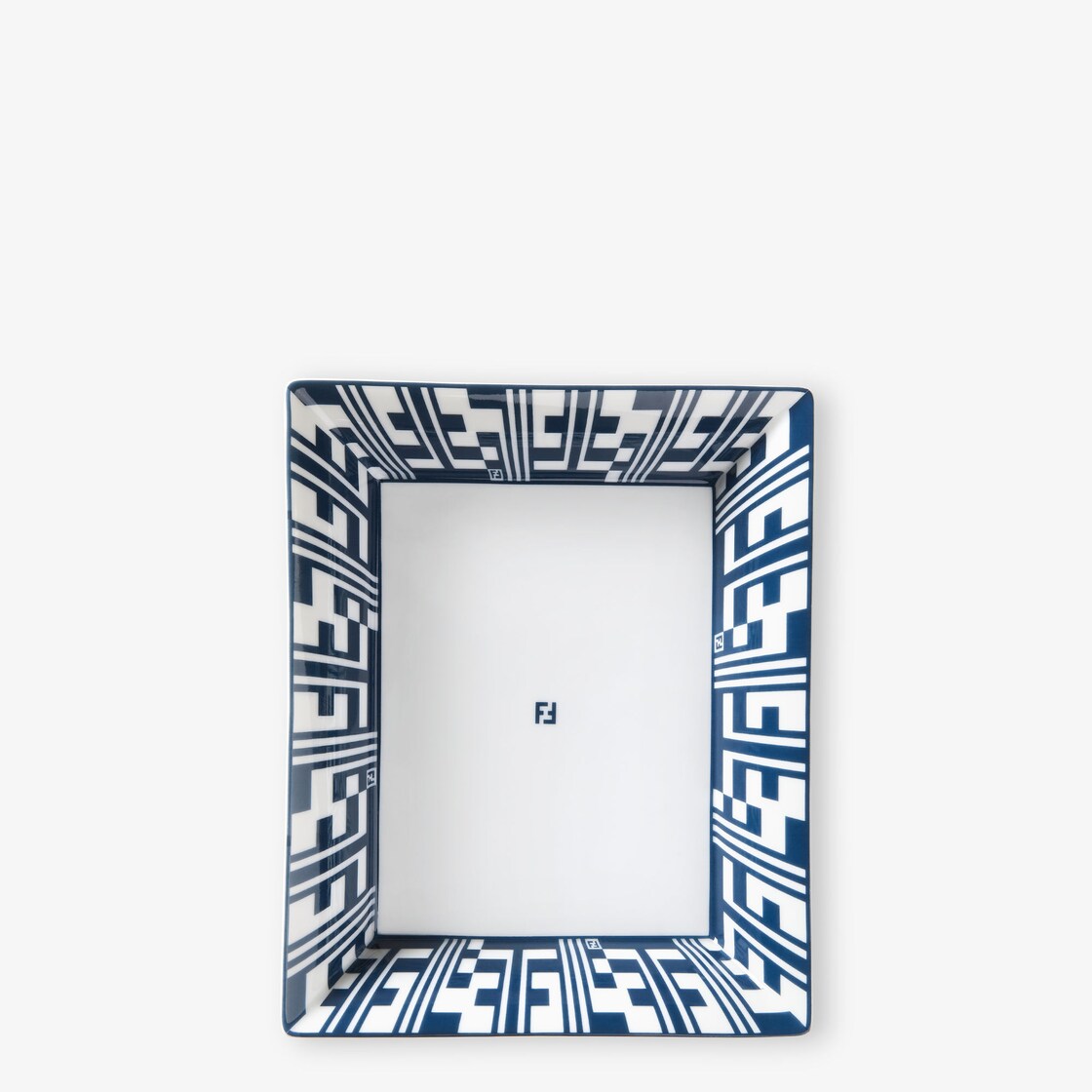 Medium rectangular pocket emptier made of the finest white Limoges porcelain. The line of Fendi accessories, inspired by the brand's archives, is enhanced by an elegant ultramarine blue graphic motif that abstractly reinterprets the iconic FF logo. The design is enriched with micro FFs woven into the graphic motif, infusing it with a dynamic energy that reflects meticulous attention to detail. Ideal for completing the Art de la Table line or for decorating the home’s interiors with a refined touch of colour.