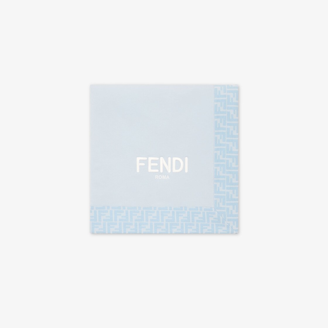 Light blue jersey baby blanket with all-over tone-on-tone printed FF logo border. Measurements 80 x 80 cm.