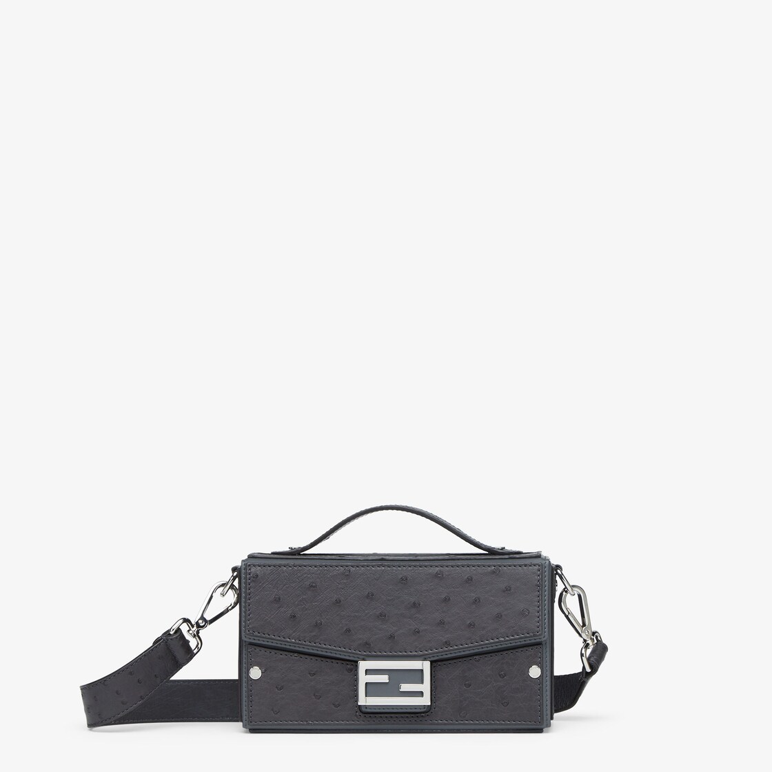 Small Baguette Soft Trunk made of exquisite ostrich leather in dark grey. Flap with magnetic FF clasp.