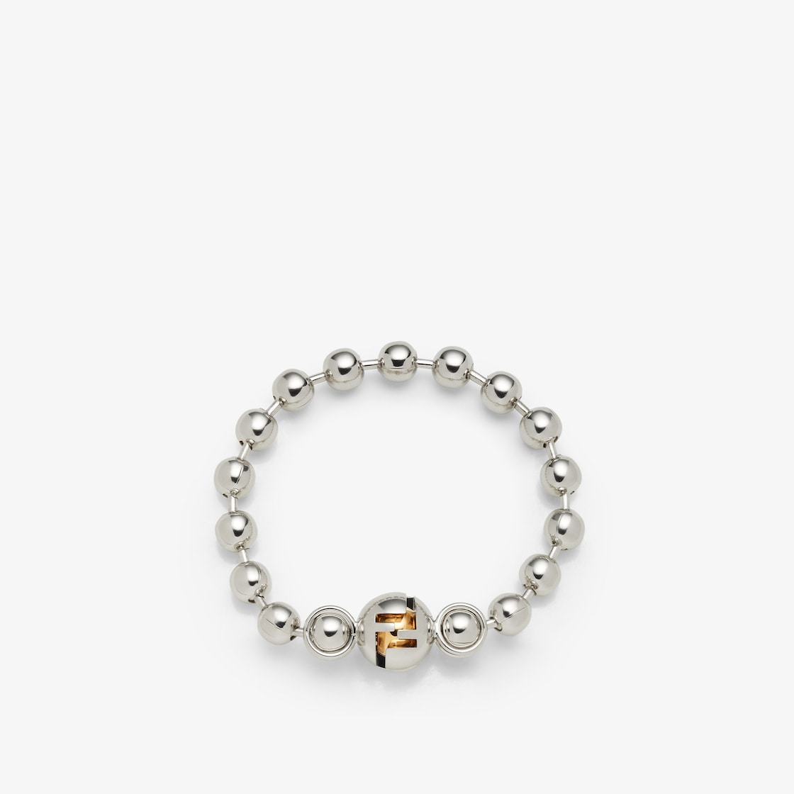 Bracelet with metallic pearls and two-tone Fendi Sphera motif. Made of palladium- and gold-finish metal.