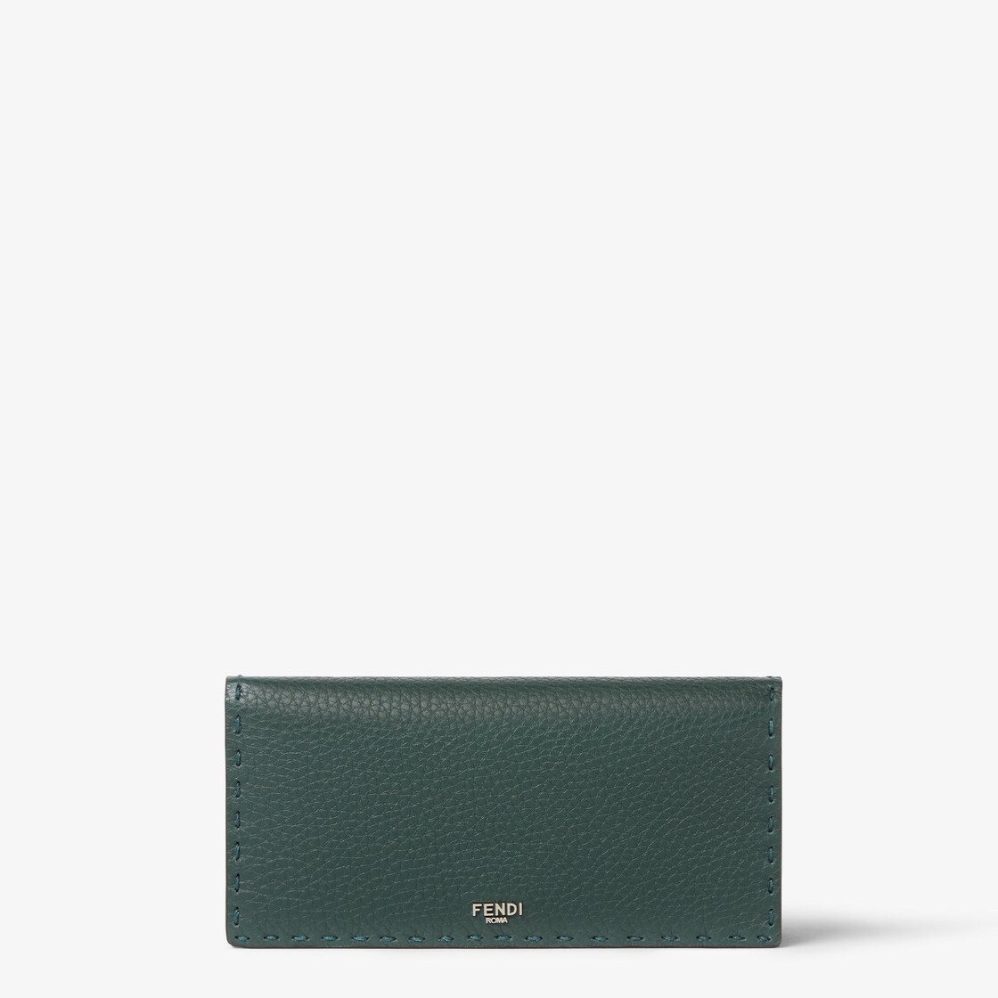 Continental wallet. Organised with 14 card holder slots, three flat pockets and a zip pocket. Made of dark green Cuoio Romano leather and finished with 141 hand-sewn tone-on-tone macro topstitches, an emblem of the iconic Selleria workmanship handed down through generations of Fendi artisans since 1925. Grey Cuoio Romano leather lining. Palladium-finish metalware.