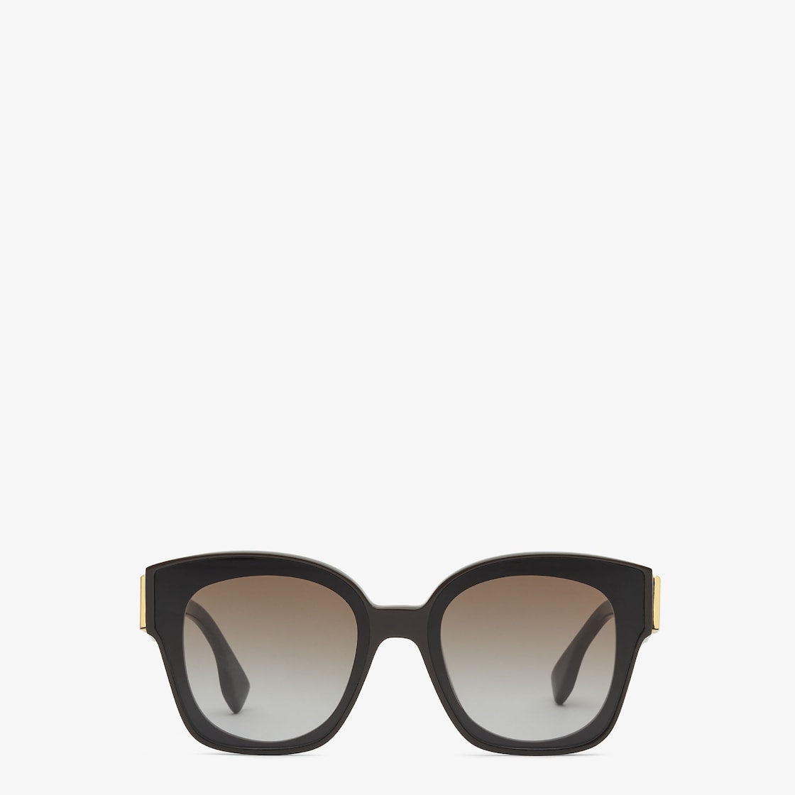 Square Fendi First eyeglasses in brown acetate. Part of the collection curated with designer Stefano Pilati, the style is customised with temples with a gold-coloured metal diagonal oversized F motif on the temples. Brown gradient lenses.