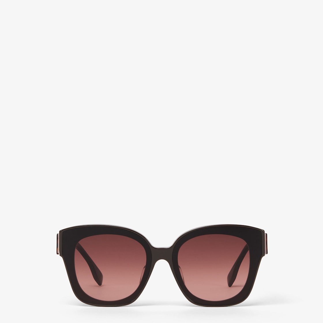 Square Fendi First eyeglasses in dark brown acetate. Temples with oversized diagonal F motif in Havana acetate, finished in gold-coloured metal. Sienna brown gradient lenses.