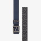 Reversible belt with thin FF Squared buckle. Made of dark blue full-grain leather. FF Canvas lining in shades of black. Brushed ruthenium-finish metalware.