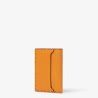 Orange and dark brown Selleria card holder with 104 hand-sewn topstitches