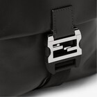 Fendi Flux Cross Body bag made of smooth black calfskin. Flap embellished with metal FF clasp buckle and central drawstring with customised cord.