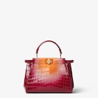 Made of exquisite, gradient crocodile leather airbrushed by hand to create a gradient fade from dark cherry red to apricot, echoing the colours of a Venetian sunset. The entirely hand-crafted process creates a unique gradient effect.