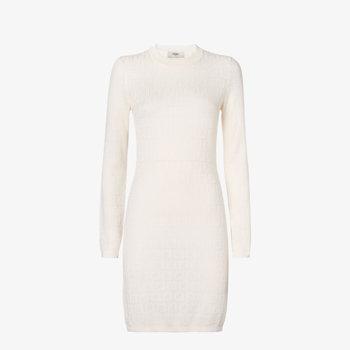 Close-fitting, long-sleeved midi dress. Made of cotton and viscose with the iconic micro FF motif all over in white. Finished with ribbed crew neck.