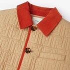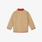 Beige junior jacket in quilted nylon with rust-coloured, striped velvet collar and edges. Press stud fastening and all-over tone-on-tone FF logo motif.