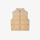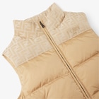 Sleeveless junior gilet in beige nylon, with jacquard fabric detail featuring tone-on-tone FF logo across the shoulders. Internal down padding and Fendi embroidery on the front.