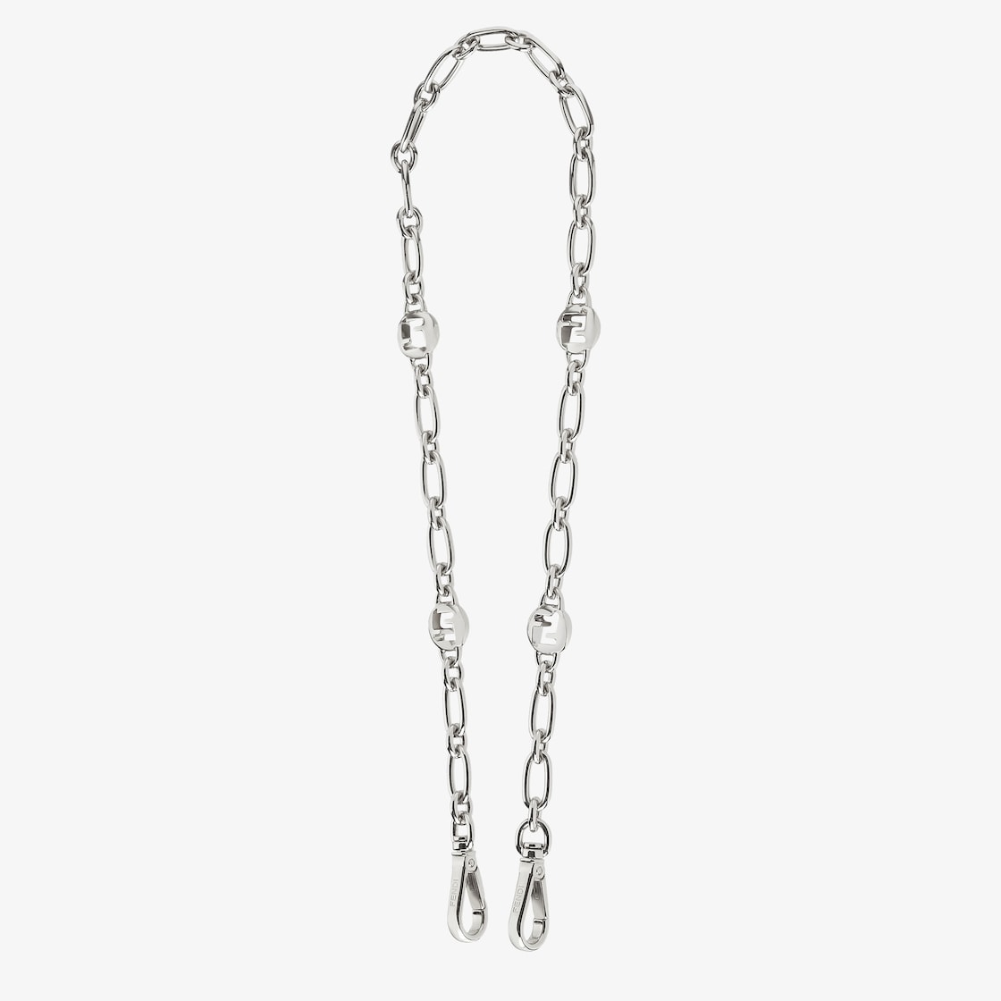 Long shoulder strap with double snap hook, to use in combination with any bag with hooks. Made of metal chain with four Fendi Sphera ornaments. Made of metal with a palladium finish.