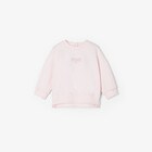 Pink crew neck baby sweatshirt, featuring side slits with tone-on-tone FF ribbon and Fendi print on the front.