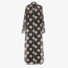 Long dress with classic collar and raglan sleeves with wide cuff. Garment fit can be modified to create a puff silhouette using the elastic inserted in the back with buttonhole adjustment. Wide cuffs and deep side slits at the hem. Full-length button fastening. Made of lightweight black technical organza. The print combines the iconic Fendi Pois motif with the collection’s Fendi Bouquet pattern in black, white and yellow. Matching black slip, removable with press stud.