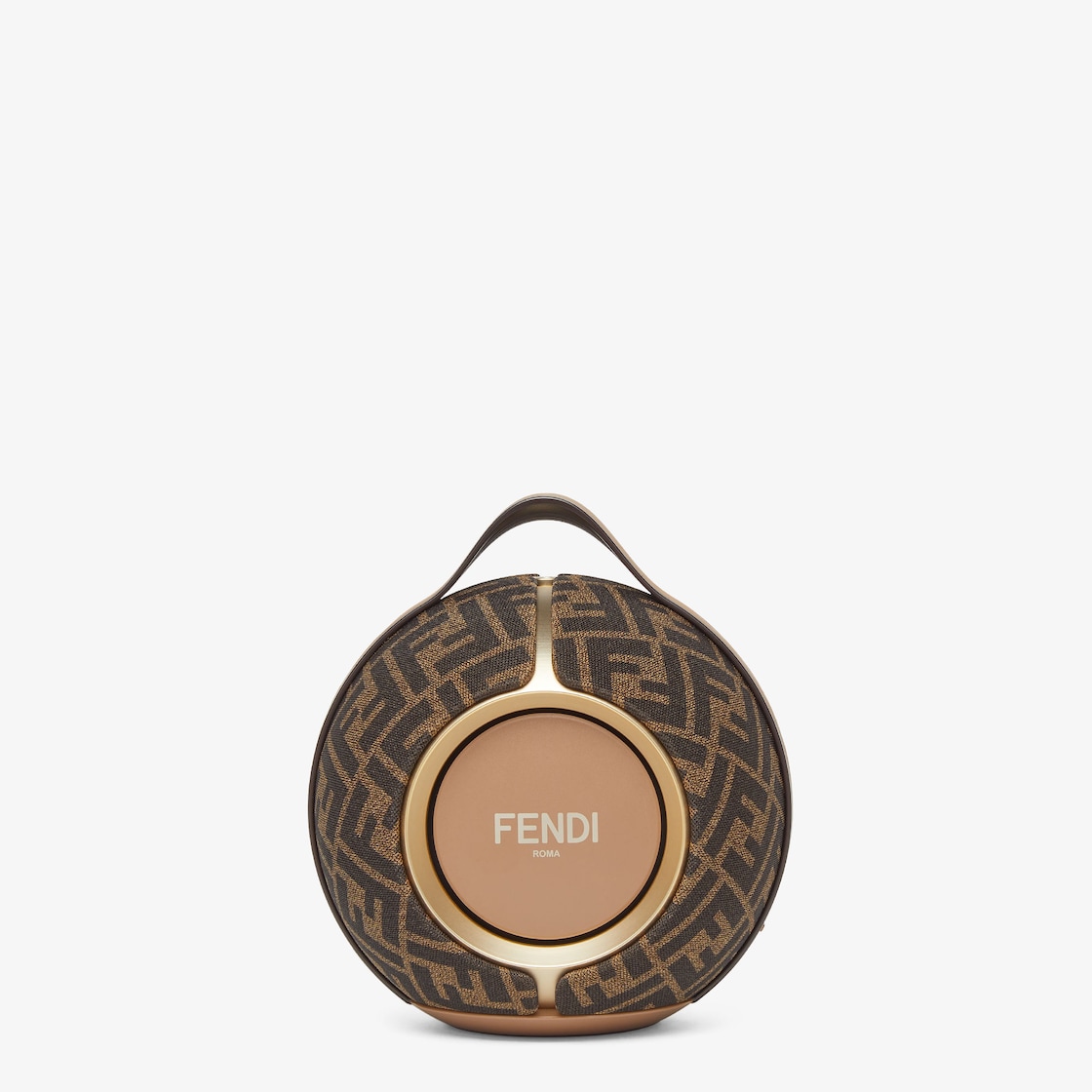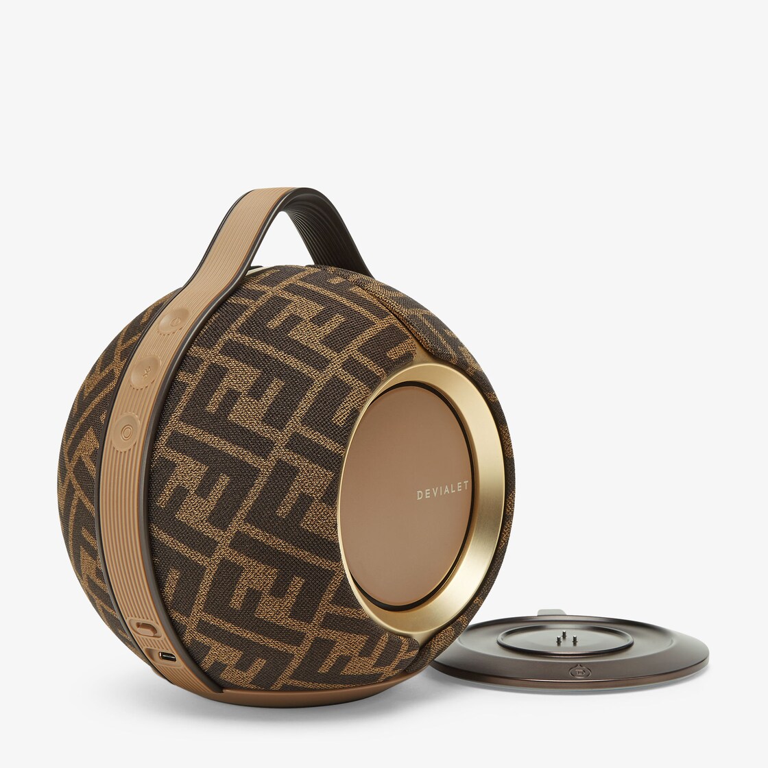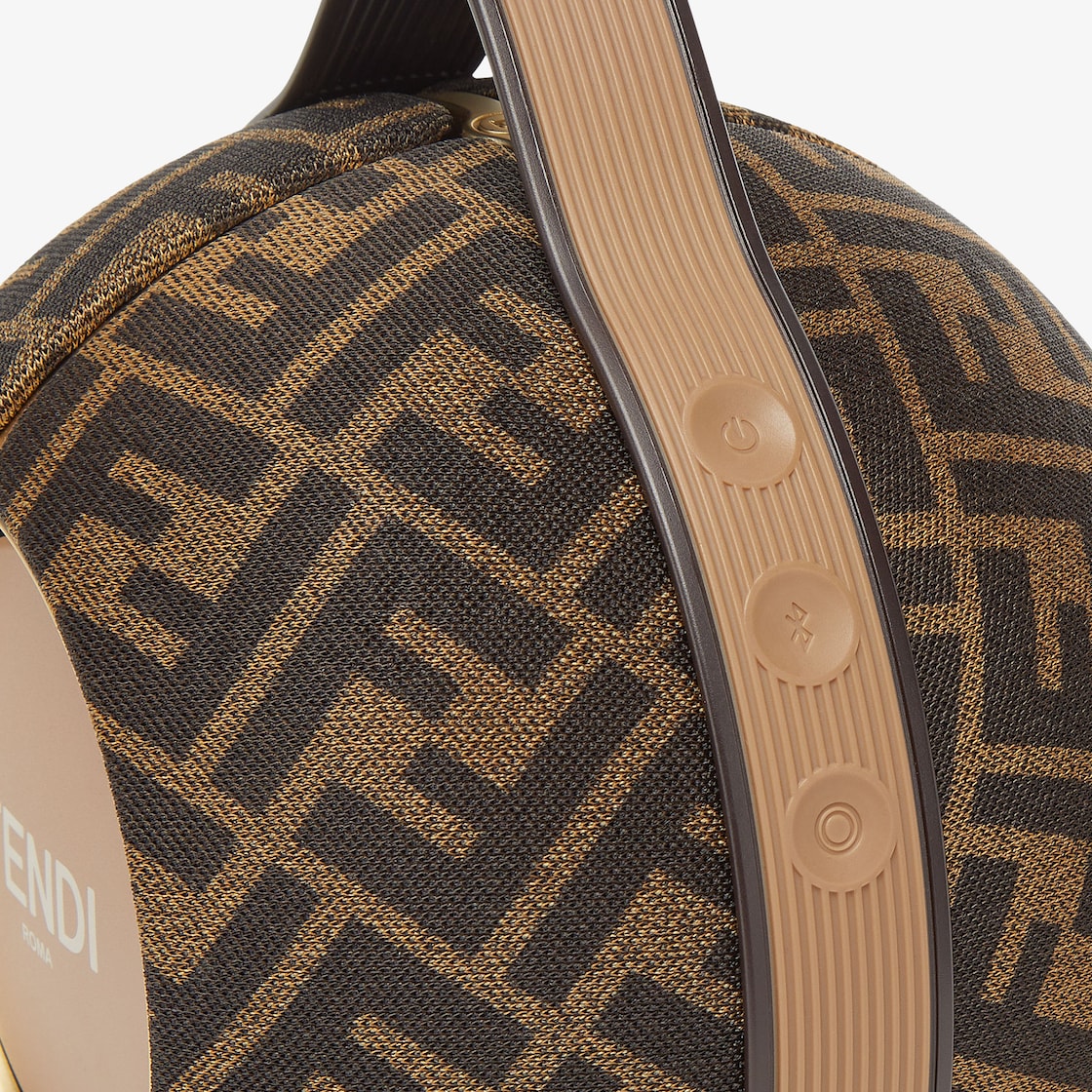 مكبّر صوت محمول مغلّف بقماش باللون البني مع طباعة FF