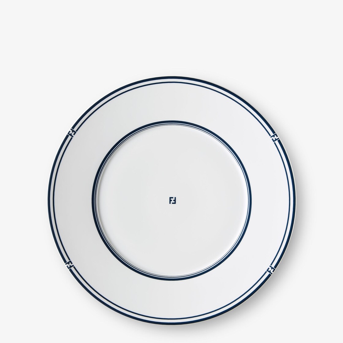 طقم مكون من طبقين من أفخر أنواع بورسلين (porcelain) ليموج باللون الأبيض. مجموعة Fendi Art de la Table الجديدة، المستوحاة من التصاميم الكلاسيكية، مزيّنة برسوم بسيطة وأنيقة، وتتميز بأطراف باللون الأزرق البحري وشعار FF مايكرو في وسط الطبق. مصمّم للموائد الفاخرة في أجواء أنيقة غير رسمية، وهو الاختيار المثالي للارتقاء بلحظات المشاركة.