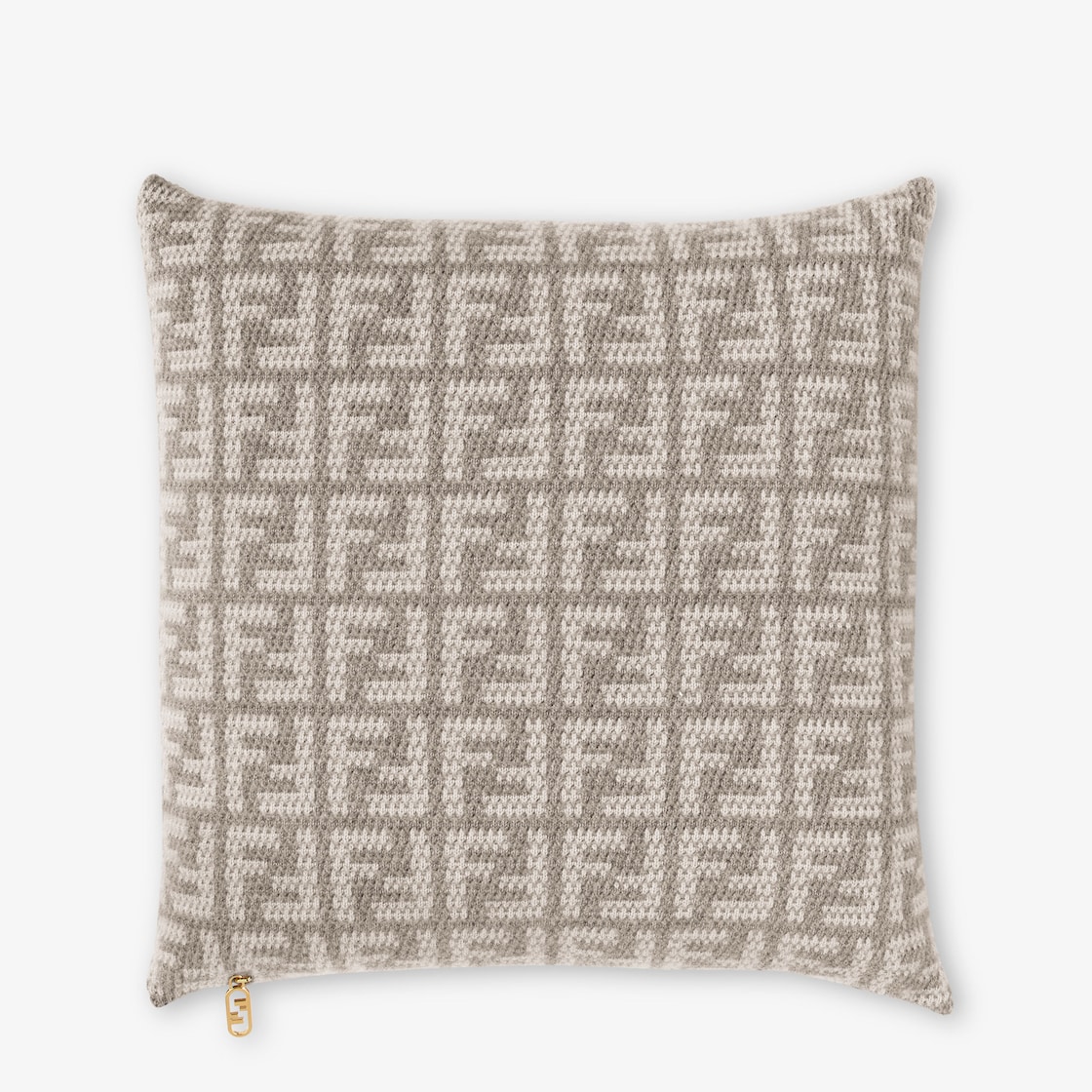 وسادة مربعة من الكشمير الناعم بدرجتين مختلفتين وتأتي بزخارف FF بألوان طبيعية من الرمادي الفاتح والأبيض. من وحي العلاقة الوطيدة التي تربط بين قطاع الأثاث وعالم الأزياء، تحتفي مجموعة وسادات Fendi Casa بشعار FF الأيقوني من فندي الذي صممه كارل لاغرفيلد في عام 1965. فهي تشكيلة مميّزة أبدعتها دار الأزياء لتضفي لمسة من الأناقة حتى على مساحاتك الداخلية.
