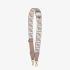 حزام كتف طويل قابل للتعديل بمشبك مزدوج، يمكن استخدامه مع أي حقيبة ذات خطاطيف. مصنوع من شريط منسوج بلون رمادي فاتح مع زخرفة FF جاكارد بلون أبيض. تفاصيل من الجلد بلون رمادي فاتح. حلية معدنية بلون الذهب.