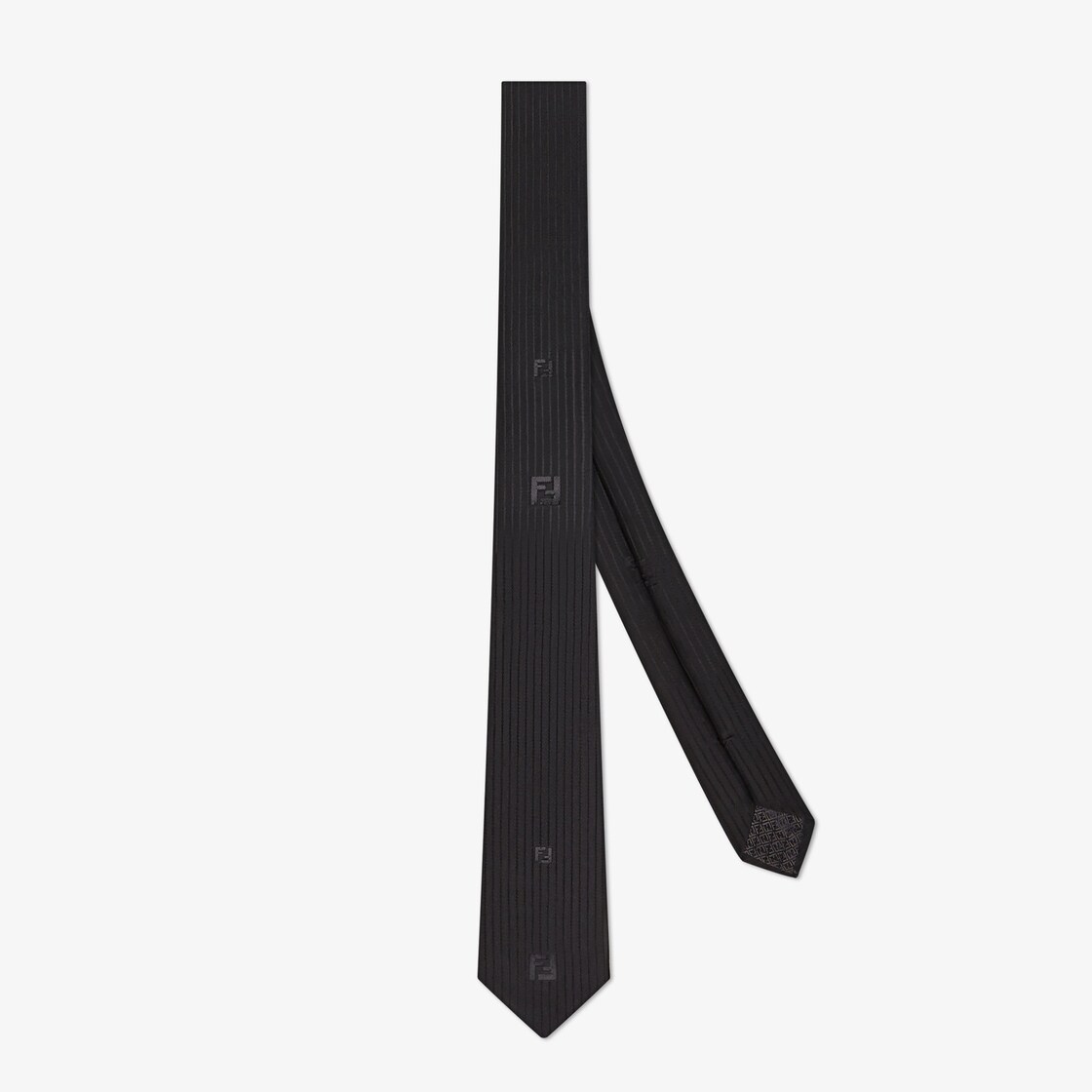 ربطة عنق حرير. عرض: 6.5 سم. باللون الأسود ومزينة بتقليمات وتفاصيل FF مايكرو من الجاكار بلون متناسق.