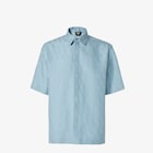 قميص مقاس واسع بأكمام قصيرة. رقبة متوسطة بتصميم إيطالي وطرف مستقيم. إغلاق بأزرار مخفية. مصنوع من كتان الجاكار مع طباعة FF باللون البيج.