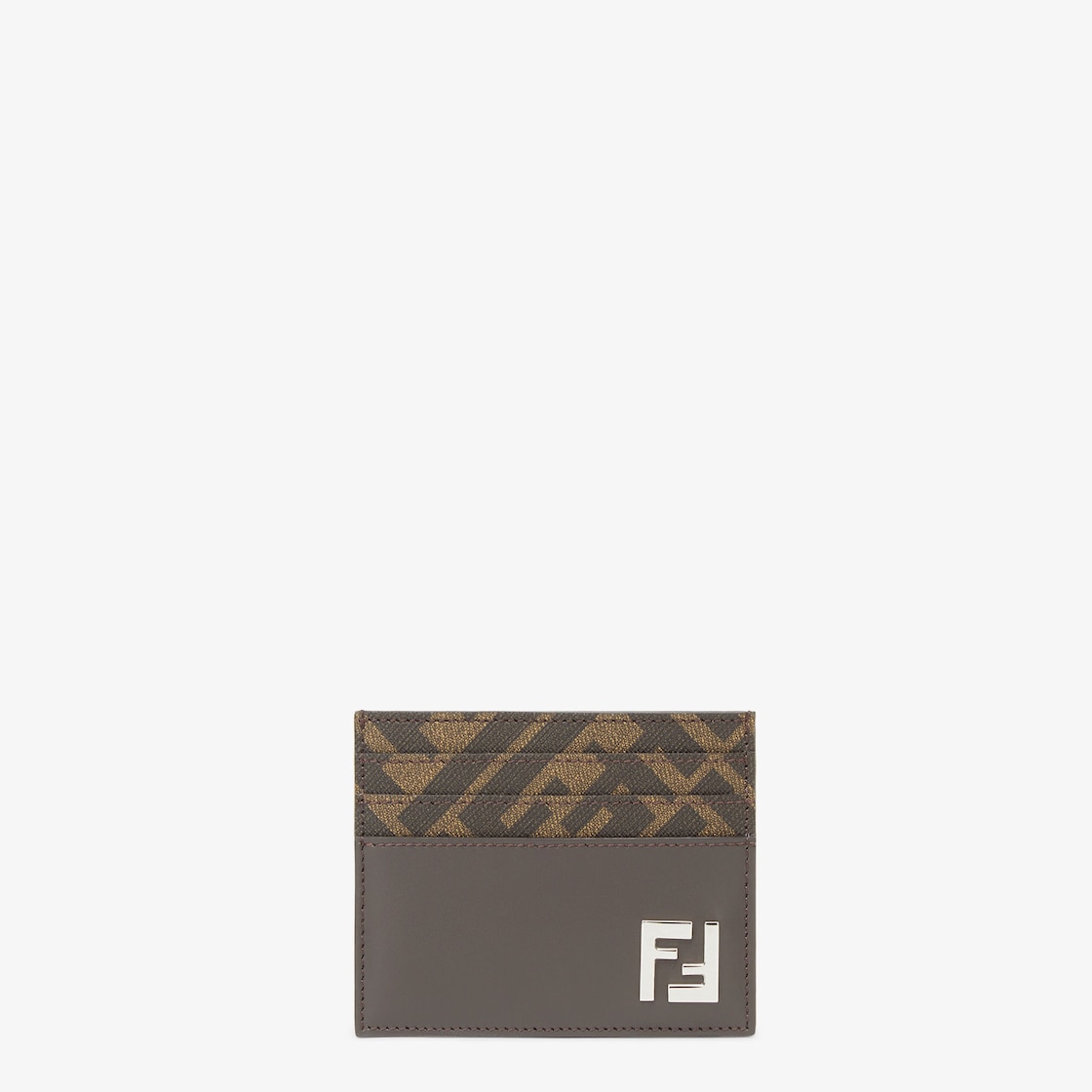 حاملة بطاقات من الجلد باللون البني وكانفاس مع طباعة FF باللون البني