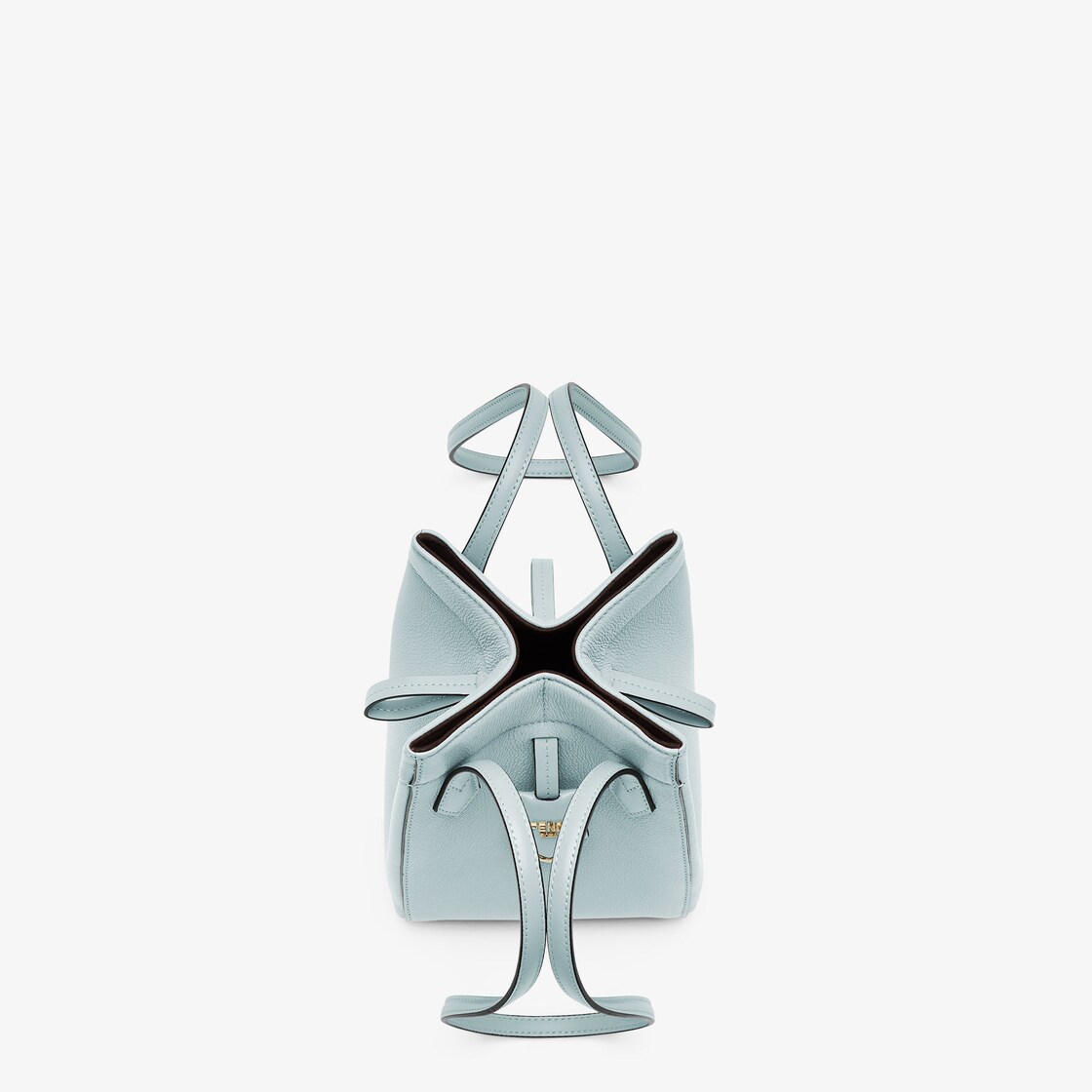 حقيبة Origami ميني مصنوعة من جلد بارز باللون الأزرق الفاتح. يعكس التصميم طبيعة فندي المزدوجة ولمستها الإبداعية الواضحة في هذا التصميم المبتكر الذي يمكن تحويله لأشكال متعددة. يساعد الإغلاق المبتكر بواسطة ثمانية أزرار من المغناطيس على طيّ الحقيبة بطريقة أوريجامي لتتحول من حقيبة bucket - عندما تجتمع أزرار المغناطيس في المنتصف بمشبك سحري - إلى حقيبة shopper بعد سحب أحزمة الكتف القصيرة من الجانبين.
