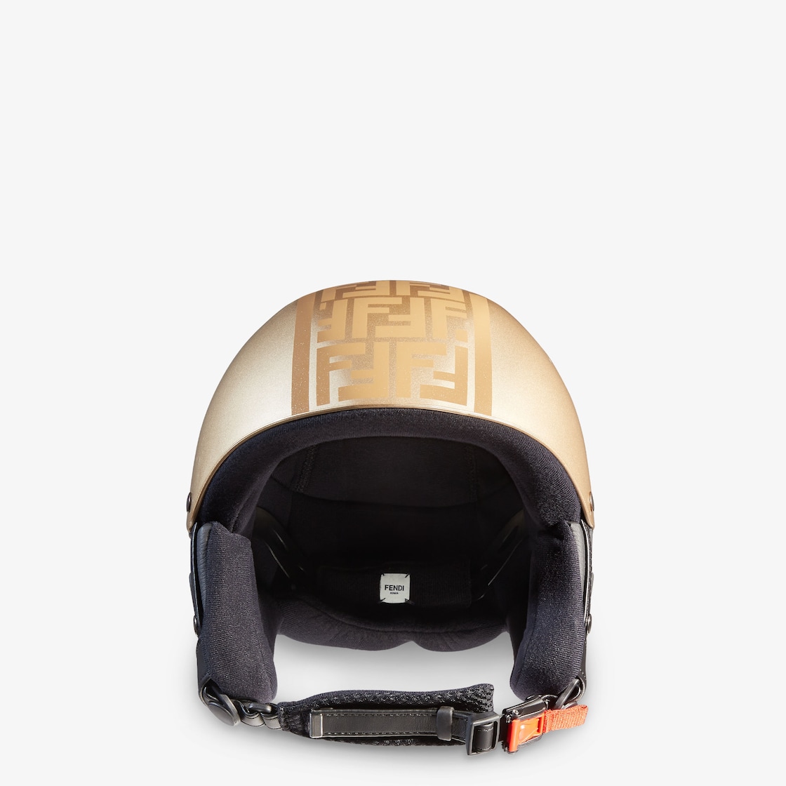 خوذة تزلج بشريط قابل للتعديل وإغلاق. مصنوعة من درجات اللون البيج ومزينة بشريط عليه طبعة FF بلون متناسق. بطانة من القماش باللون الأسود.
