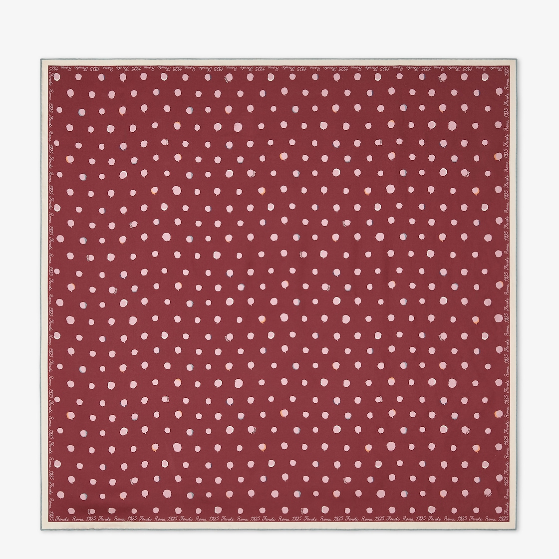 فولار مربع مصنوع من الحرير بوجهين باللونين الوردي والعنّابي.يُعيد نمط Falena Dots ابتكار علامة نقاط البولكا الكلاسيكية بتصميم فريد لإطلالة غير رسمية مميزة.تظهر نقاط البولكا المرسومة يدوياً مع تفاصيل العلامة بالتبادل، والأطراف مزيّنة بعبارة Fendi Roma 1925 احتفاءً بالذكرى المئوية لتأسيس فندي.يكتمل جمال التصميم بإطار مخطط بتأثير تمازج الألوان (colour-block).أطراف ملفوفة يدوياً.