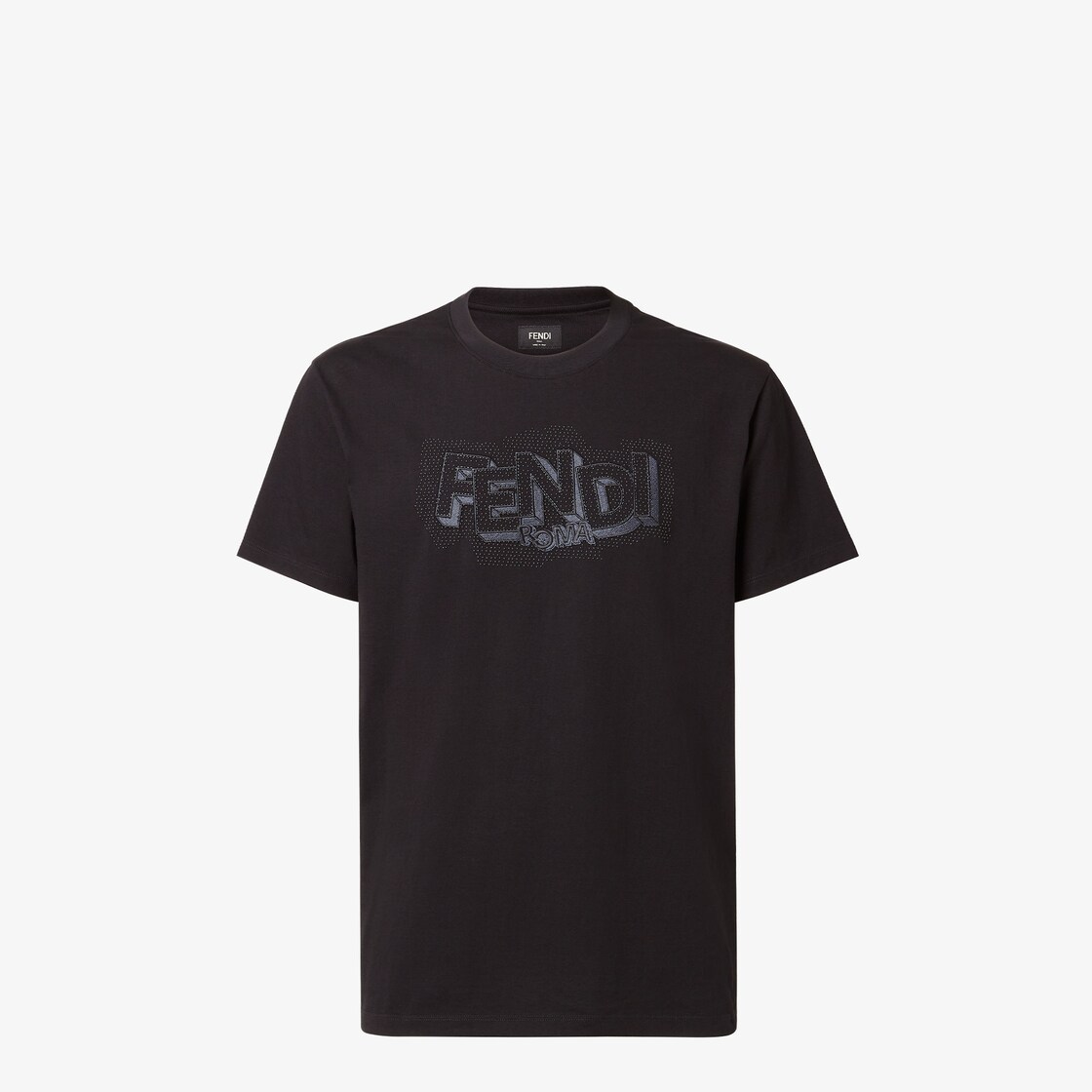 Slim-fit short-sleeved crew-neck T-shirt. Made of 100% cotton in black. Embellished with a matching Fendi Pop Pois motif embroidered on the front, inspired by the collection’s Falena Dots pattern.