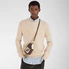 Regular-fit crew-neck pullover. Made of light grey wool yarn in a fisherman’s rib knit. Embellished with matching maxi Fendi lettering embroidered in yarn on the front.