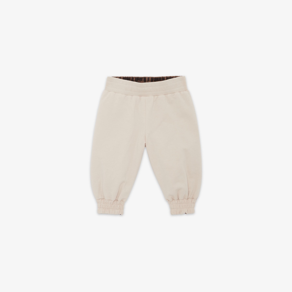 Reversible baby jogging trousers with drawstring at the waist. One side in beige jersey with tone-on-tone Fendi embroidery, and the other in nylon with all-over tobacco FF logo.