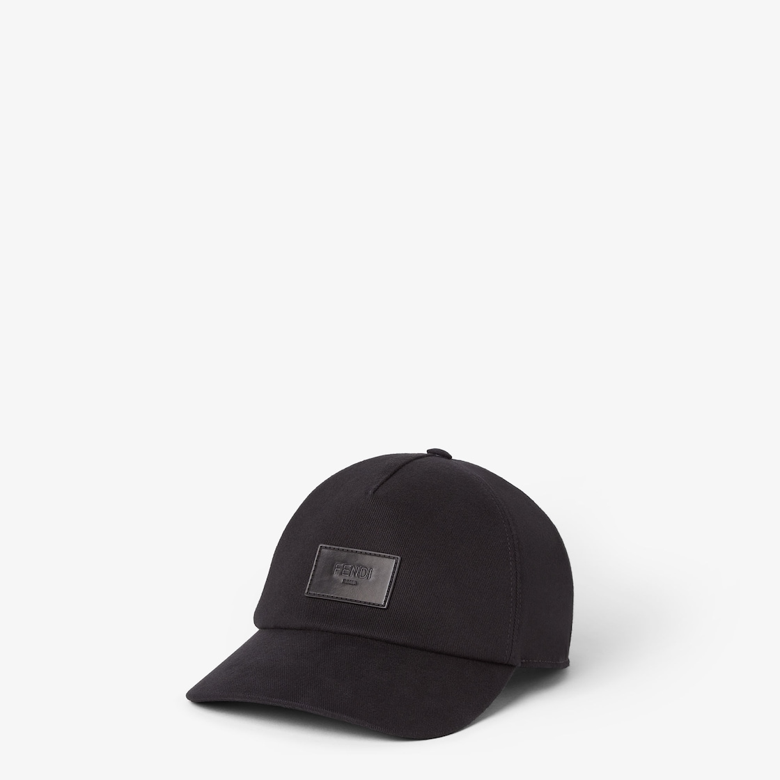 Baseball cap with semi-stiff peak made entirely in black cotton canvas. Customised with leather Fendi Roma patch in matching terry on the front.