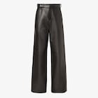 High-waisted trousers with a wide, straight leg. Side and back pockets. Belt loops at the waist. Concealed zip fastening. Made of soft, smooth black nappa leather. Finished with leather goods-style seaming and stitching.