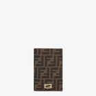 Чехол для паспорта Baguette с пятью прорезями для пластиковых карт. Модель из ткани с легендарным жаккардовым узором FF в коричневых тонах. Внутренняя часть из кожи бежевого цвета. Металлическая фурнитура с золотистым покрытием.