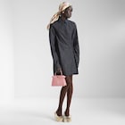 Короткое платье-рубашка прямого силуэта. Отложной воротник и рубашечные манжеты. Перекрещенная асимметричная застежка на маленькую пуговицу сбоку создает каплевидные элементы в районе декольте. Модель из сверхлегкого денима шамбре. Вышитый логотип в тон на манжете левого рукава.