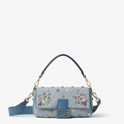 Модель из жаккарда с эффектом денима в оранжевых тонах украшена закрепленными вручную эмалированными цветами, создающими узор Fendi Flower Bouquet. Застежка FF.