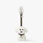 Подвеска Milo для сумок из волнистой овчины белого цвета. Подвеска в форме собаки со шнурком из ткани с узором FF коричневого цвета и фирменным карабином с логотипом Fendi. Ошейник из кожи с логотипированным медальоном. Металлическая фурнитура с палладиевым покрытием.