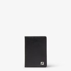 Компактный футляр-книжка для пластиковых карт с внутренней частью, состоящей из трех прорезей для пластиковых карт и двух плоских карманов, и одним плоским карманом на оборотной стороне. Модель из телячьей кожи черного цвета с полуглянцевым покрытием. Декор Squared FF из металла с палладиевым покрытием.
