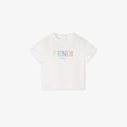 Футболка для малышей из джерси белого цвета с разноцветной вышитой надписью Fendi спереди.