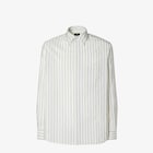 Рубашка с длинными рукавами и накладным нагрудным кармашком слева. Модель свободного силуэта. Потайная застежка. Модель из поплина из смеси шелка и хлопка с узором в вертикальную полоску и деталями в вертикальную полоску FF в голубых тонах.