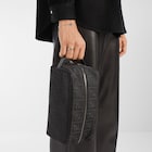 حقيبة أدوات تجميل بسحّاب بحجم متوسط.مصنوعة من النايلون (nylon) المبطّن باللون الأسود مع طباعة FF بملمس فاخر منقّش قليلاً.مزيّنة بمقبض من جلد العجل الناعم باللون الأسود.بطانة من القماش قابلة للغسل.زينة معدنية مطلية بلمسة نهائية من الروثينيوم (ruthenium).