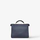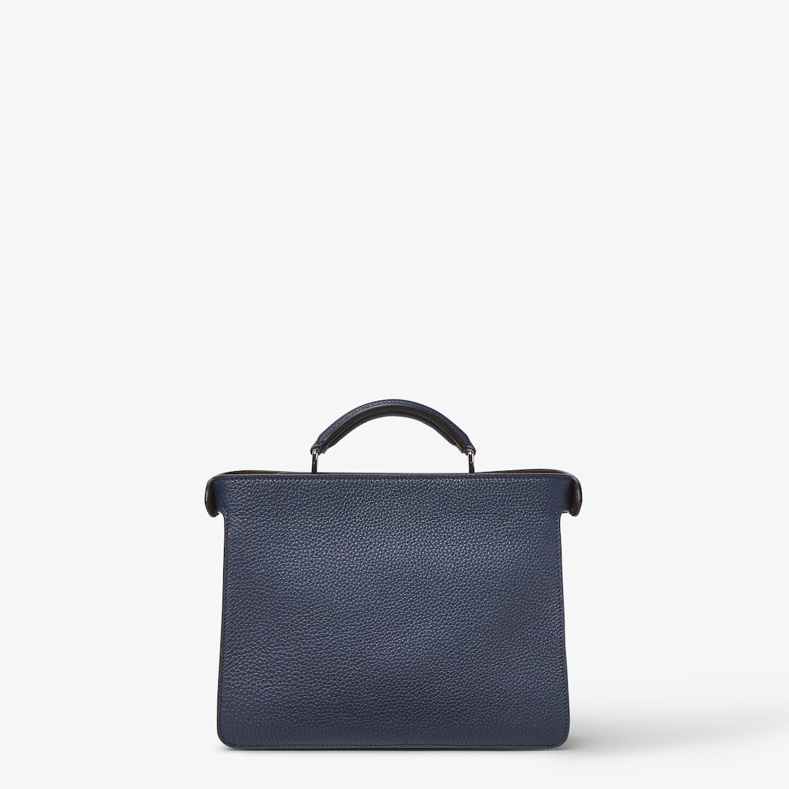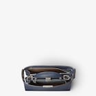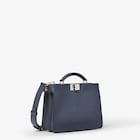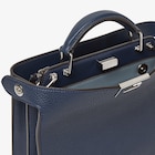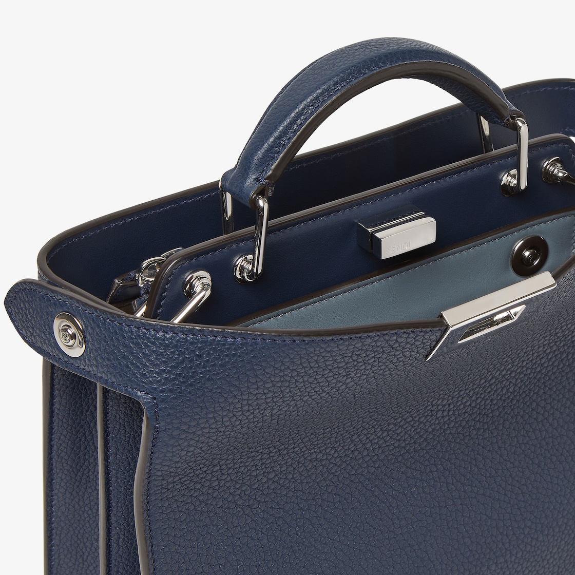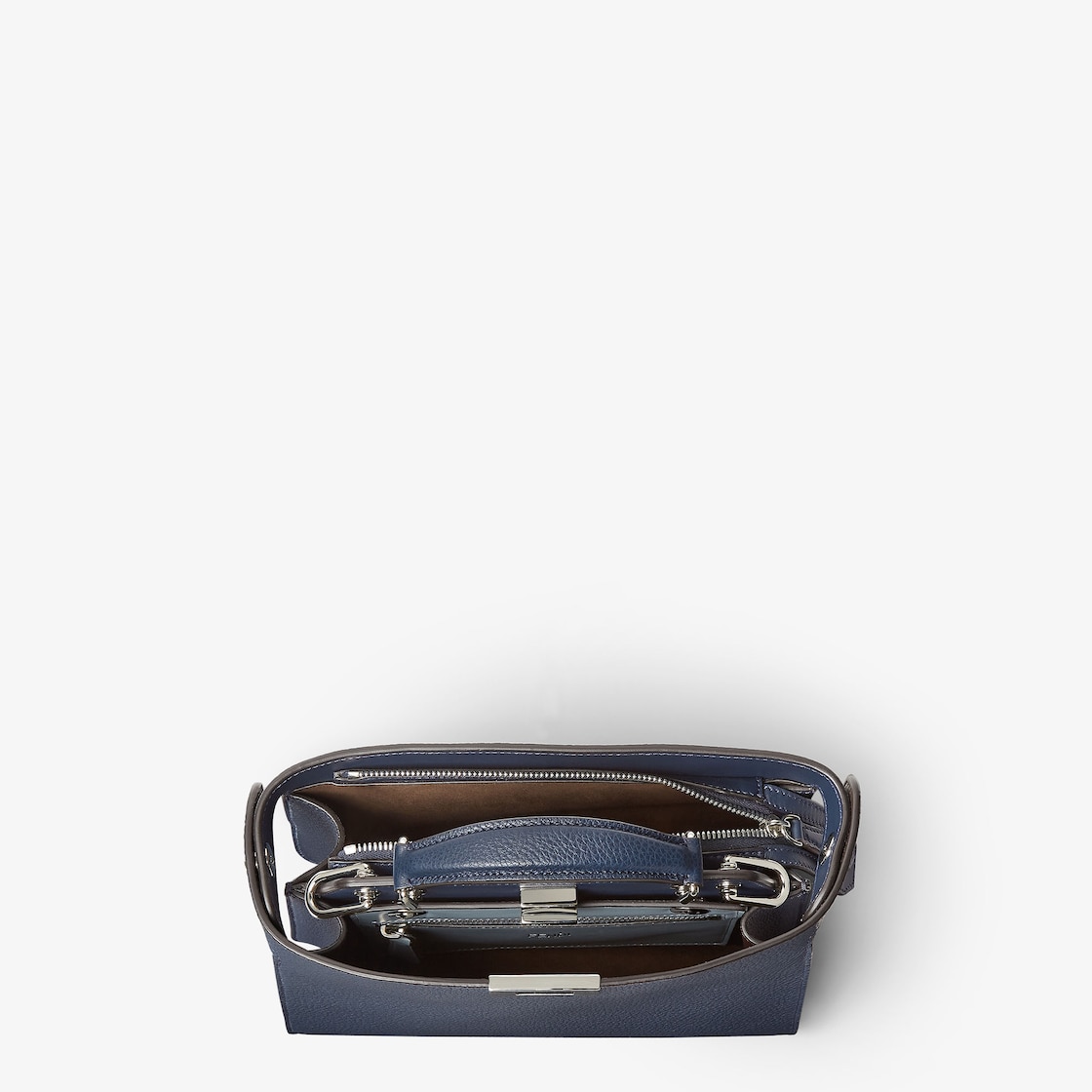 حقيبة Peekaboo ISeeU بحجم صغير، مصنوعة من جلد العجل كويو رومانو (Cuoio Romano) باللون الأزرق الداكن مع قسم داخلي باللون البني الداكن المتباين.
