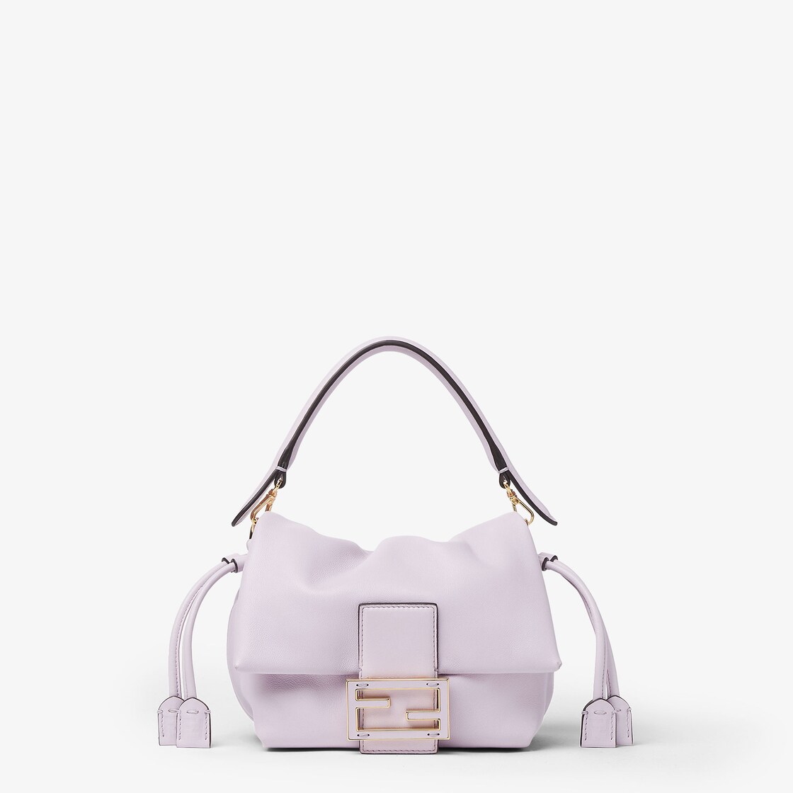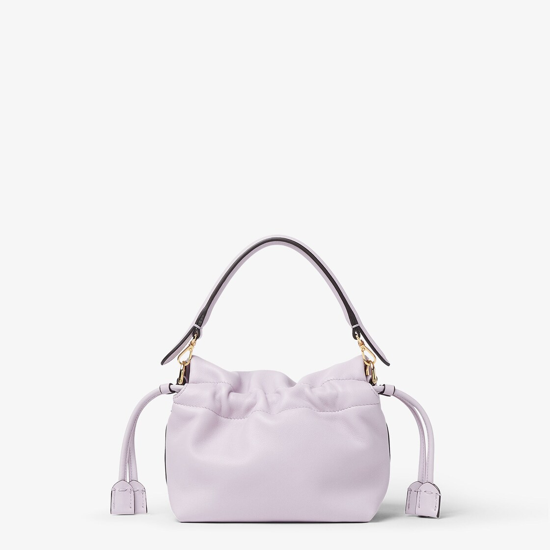 مصنوعة من جلد النابا (nappa) الناعم بلون شقائق النعمان البنفسجي ومزيّنة بمشبك FF كبير من المعدن مع زيادة من الجلد بدرجات مختلفة من اللون نفسه.