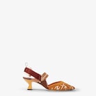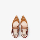 حذاء بشريط مطاطي خلفي بكعب متوسط من القماش مع علامة FF باللون الوردي
