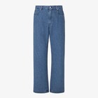 سروال بقصّة مستقيمة وخمسة جيوب. تصميم بقصّة عادية مع خصر عالٍ. إغلاق بسحاب وزر. العرض عند الطرف: 24 سم. مصنوع من قماش الدنيم ومُعالج بتقنية الغسل الحجري باللون النيلي مع درزات باللون البيج عليه بالكامل. مزيّن بطباعة FF من الداخل ومسامير معدنية بلمسة نهائية من البلاديوم (palladium). علامة من الجلد باللون الأزرق مع تفاصيل FF Selleria على الجهة الخلفية.