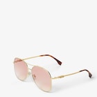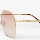 نظارات شمسية Fendigraphy أفياتور بمقاس كبير مصنوعة من المعدن باللون الذهبي.ذراعان أنبوبيان مزيّنان بحروف Fendi ثلاثية الأبعاد وأطراف من الأسيتات (acetate) بلون هافانا.عدسات باللون الوردي المتدرّج.وسادات أنف قابلة للتعديل.