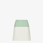 تنورة قصيرة بخصر عالٍ وتصميم واسع قليلاً عند الطرف.إغلاق بسحاب من الجهة الخلفية.مبطّنة.التصميم جزء من المجموعة الموسمية "Fantastic Fendi Future" من فندي المصمّمة بالتعاون مع الفنانة اليابانية آيا تاكانو، وهو مصنوع من الصوف والحرير بتأثير تمازج الألوان الأبيض والأخضر الفاتح.