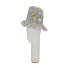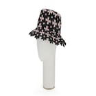 قبعة bucket مصنوعة من الرافيا (raffia) باللون الأسود مع حبكة كروشيه بأشكال الزهور وتفاصيل متباينة باللونين الأبيض والوردي.مزيّنة بعلامة حروف Fendi من المعدن باللون الذهبي.غير مبطن.