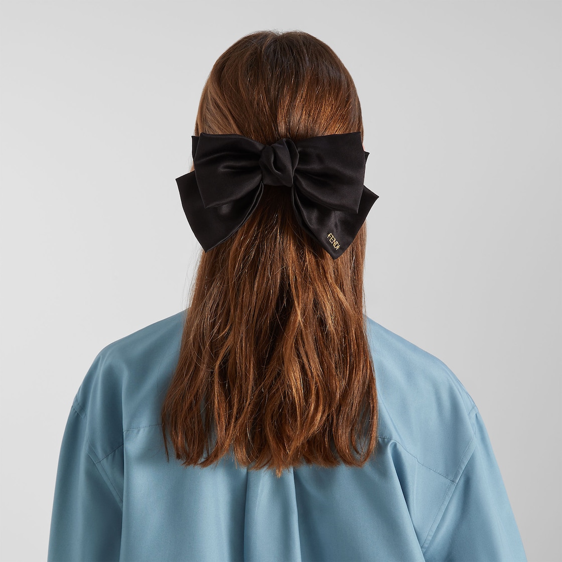 مشبك شعر على شكل ربطة فراشة.مصنوع من الحرير باللون الأسود.مزين بحروف Fendi Roma من المعدن في الجهة الأمامية.زينة معدنية باللون الذهبي.
