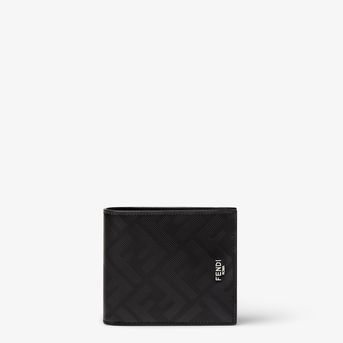 محفظة بثمانية فتحات داخلية للبطاقات وقسمين للأوراق النقدية. خامة جلد بلون أسود مع شكل FF محفور بارز. بطانة من الجلد الأحمر. مزيّنة بشعار Fendi معدن بلون البلاديوم.