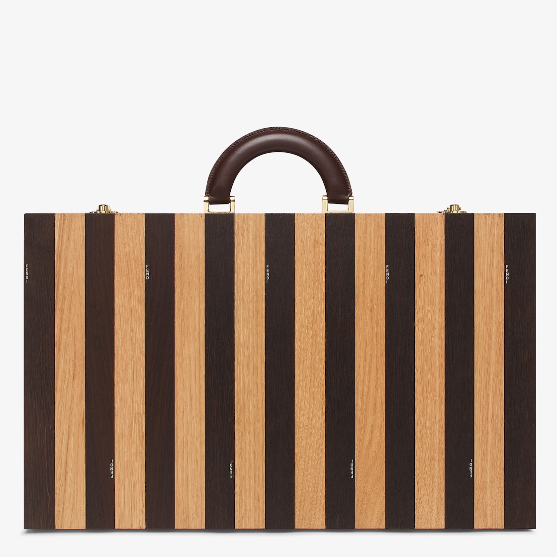 تُعد ألعاب الطاولة جزءًا ملهمًا في المجموعة الجديدة من اللوازم التي لا غنى عنها في الحياة اليومية، بهدف خلق أجواء مريحة ومسلية لقضاء عطلة تكتمل متعتها مع العائلة. تجمع الألعاب بين المرح وأناقة التصميم، فقد صًمّمت جميع الألعاب بحيث يسهل نقلها وتخزينها كقطعة ديكورية تُضفي لمسة من البهجة على المكان. صندوق خشبي مرصّع بزخارف بيكوين المخططة في تعبير أيقوني عن هوية دار الأزياء. غطاء من البلكسي جلاس ومقبض من جلد النابا بلون متناسق.